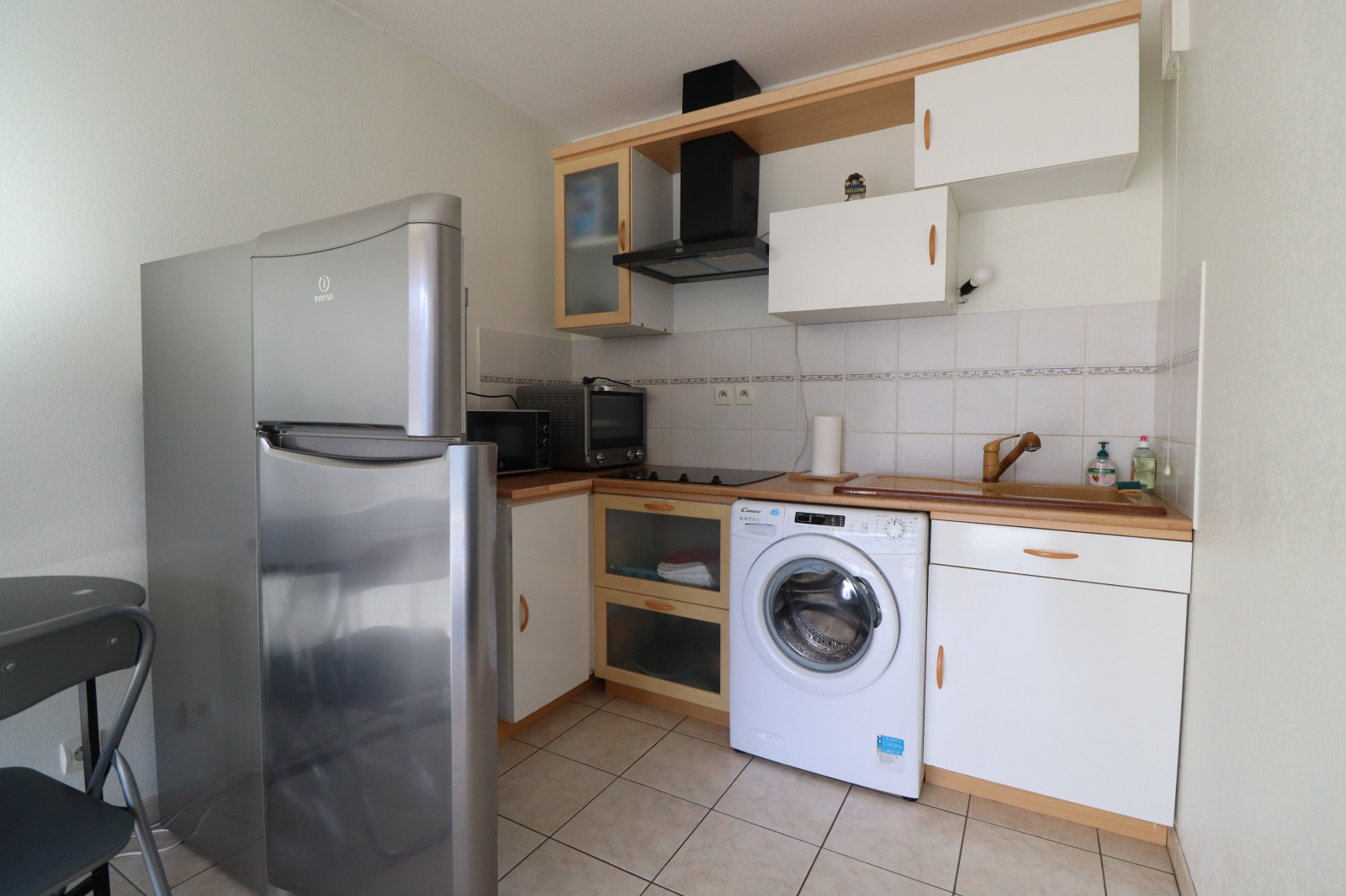 Il dispose d'une entrée avec placard, d'un séjour avec coin cuisine qui sort sur une belle terrasse, d'une chambre et d'une salle de bains avec WC.